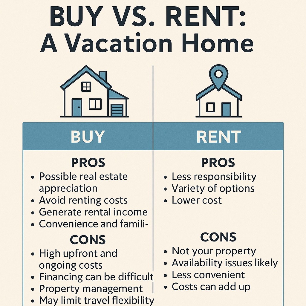Renting can be a low-commitment way to explore different destinations and avoid upkeep. But for some, the idea of owning a retreat that feels like "yours" is worth the investment. While we're not real estate agents, we are here to help you think through the big picture—financially and personally.
